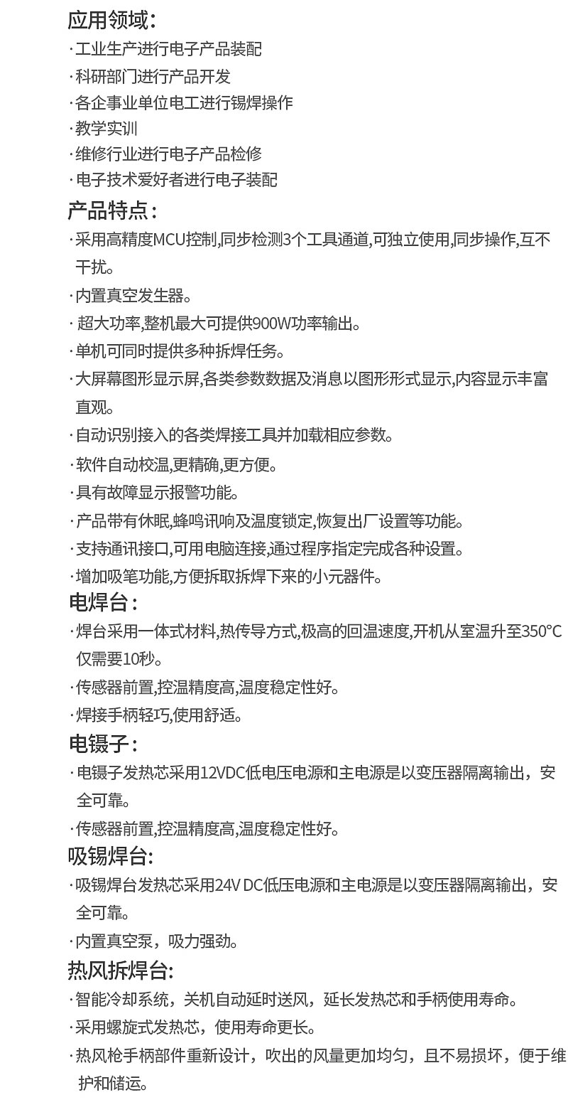 主機(jī)一臺(tái),吸錫槍一只,拆焊臺(tái)風(fēng)槍一只,焊臺(tái)手柄一只,電鑷子一只,電源線一根,風(fēng)槍支架一個(gè),烙鐵座兩個(gè),說(shuō)明書一本,吸錫槍內(nèi)膽一個(gè),過(guò)濾棉9塊,防燙墊一塊,彈簧通針一根,防火氈5個(gè),吸錫咀3個(gè),噴嘴4個(gè),螺絲2顆,吸槍塞9個(gè),吸槍墊9個(gè),吸錫槍O形圈3個(gè),吸咀3個(gè),吸盤11個(gè),彈簧3個(gè)